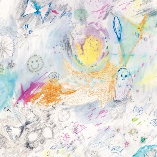広い宇宙を背景に、ユーレイや星々、お魚など