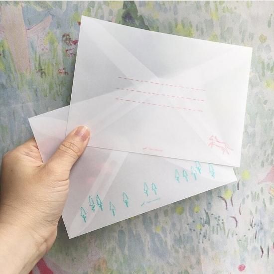 便箋とトレーシング封筒(2種)とシールのセットになっています。