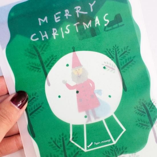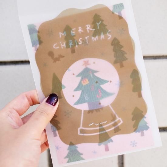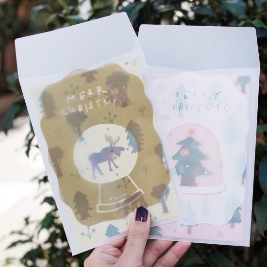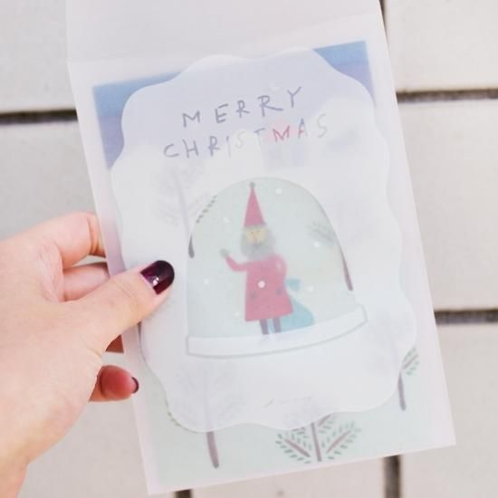 スノードームのすけすけ封筒と合わせると、スノードームに入ったように見えるデザインになっています。