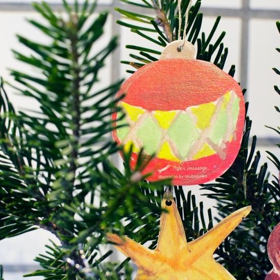 イラストは、クリスマスの新イラスト柄「モミの木とオーナメント」