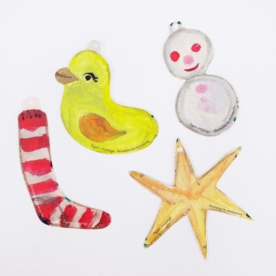 からくり抜かれた「あひる・星・しましま靴下・雪だるま」の4種。