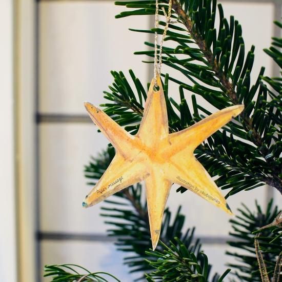 お好きなヒモを付けて、ツリーなどに飾ってお楽しみください。