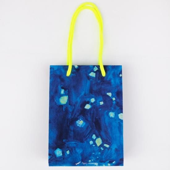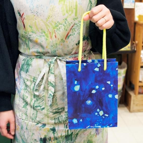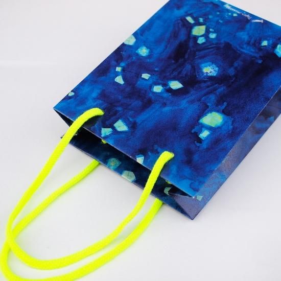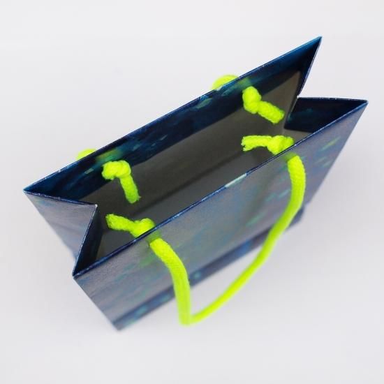 こちらの冬の大三角の紙袋は、持ち手部分の紐が蛍光のレモン色になっています。