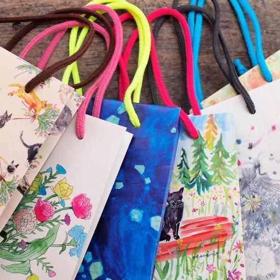 イラストのイメージに合わせて紐の色を選んでいるので、柄違いでたくさん揃えてみても素敵です。