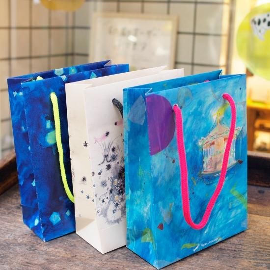 人気のイラストの中から18種が紙袋になりました。