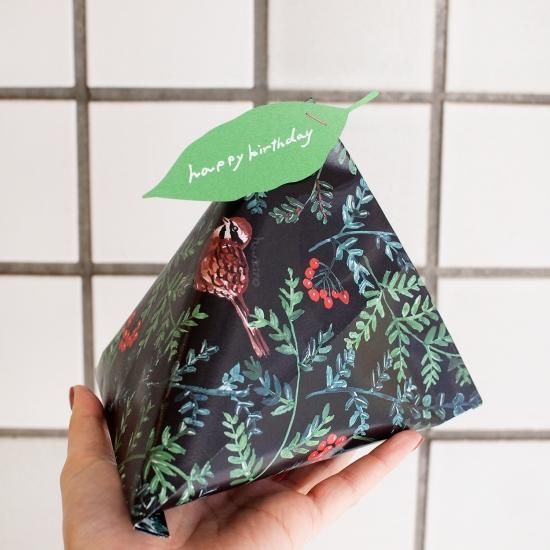 2021年の新柄「鳥と木の実」の包装紙ができました。