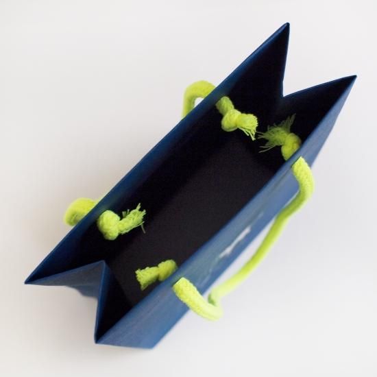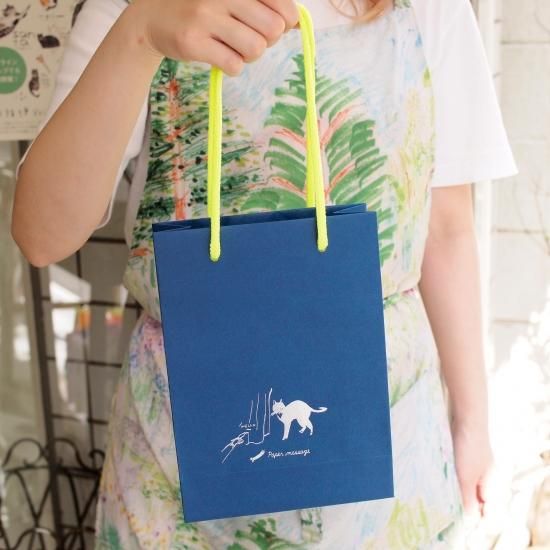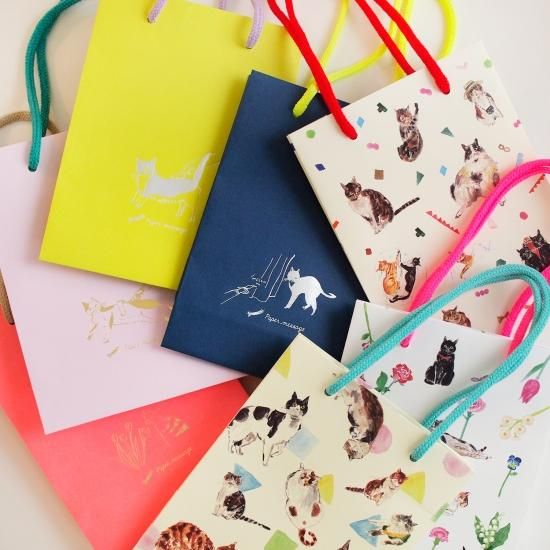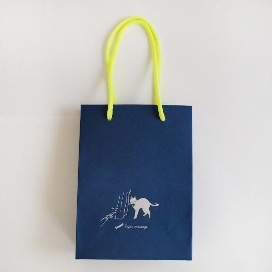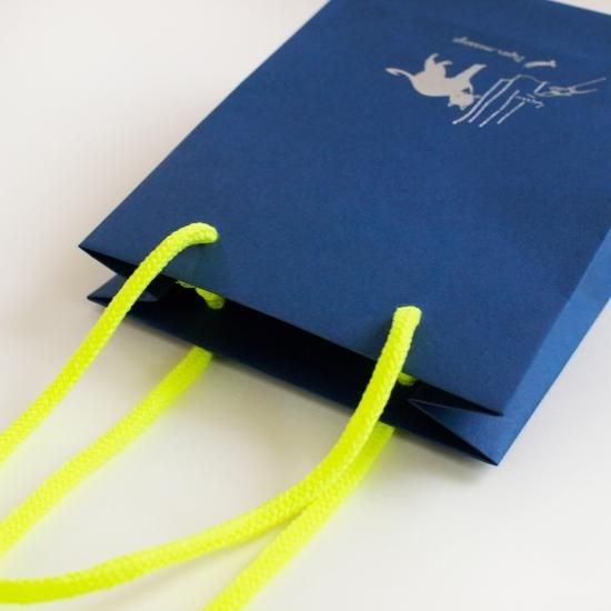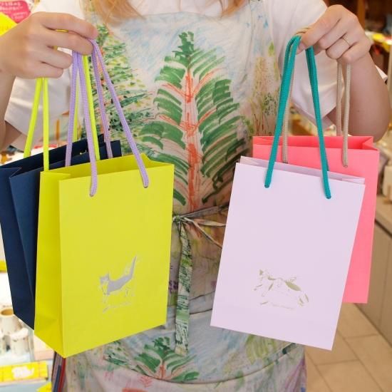 こちらの「猫と鳥」の紙袋は、持ち手部分の紐が黄色になっています。