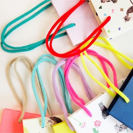 イラストのイメージに合わせて紐の色を選んでいるので、柄違いでたくさん揃えてみても素敵です。