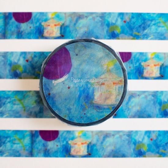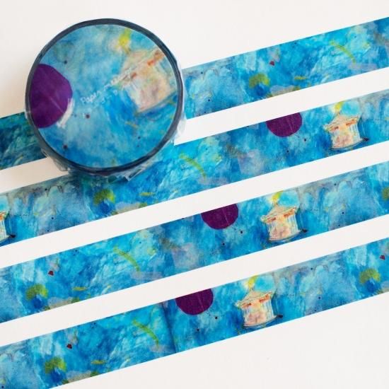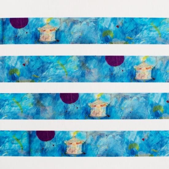 青の中のメリーゴーランドとカラフルな照明が夢の中のようで可愛いイラスト柄「メリーゴーランド」のマスキングテープです。