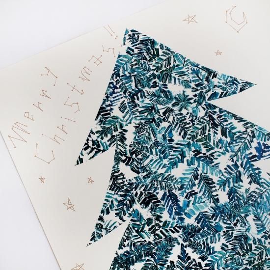 A3サイズのポスターには大きなモミの木が印刷されています。