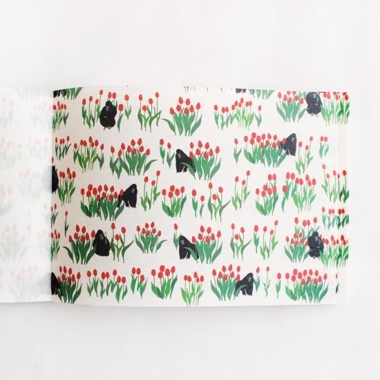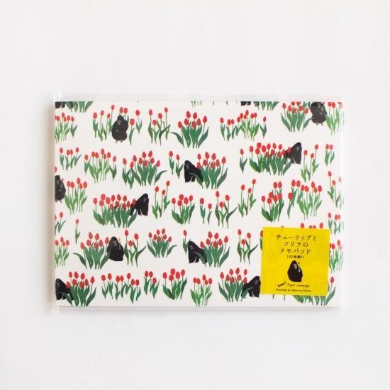 チューリップとゴリラというなぞの組み合わせのシュールでかわいいイラスト柄です。