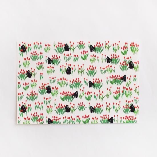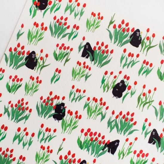 チューリップとゴリラというなぞの組み合わせのシュールでかわいいイラスト柄です。