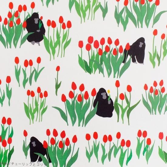 チューリップとゴリラというなぞの組み合わせのシュールでかわいいイラスト柄です。