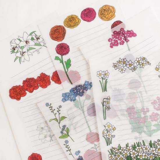 デザイナーが花フェスタ!2022のために描き下ろした誕生花のすけすけ便箋です。