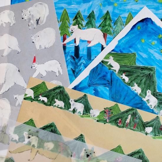 「しろくま」や「動物の行列」などいろんなテイストのイラスト柄が楽しめます。