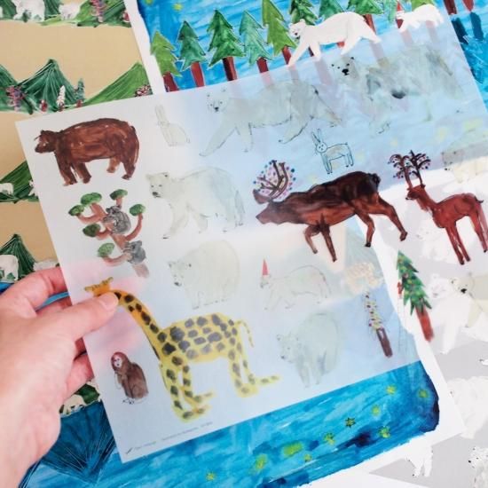 「冬の動物」の包装紙は透け感が楽しめるトレーシングの紙に印刷されています。