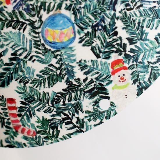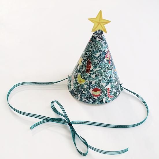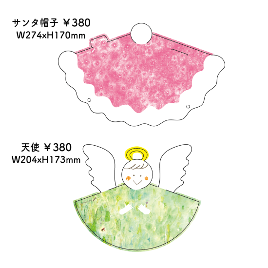 「クリスマスツリー小/大」と「サンタ帽子」のサイドには穴もあるので、ヒモを通して帽子にすることもできます。