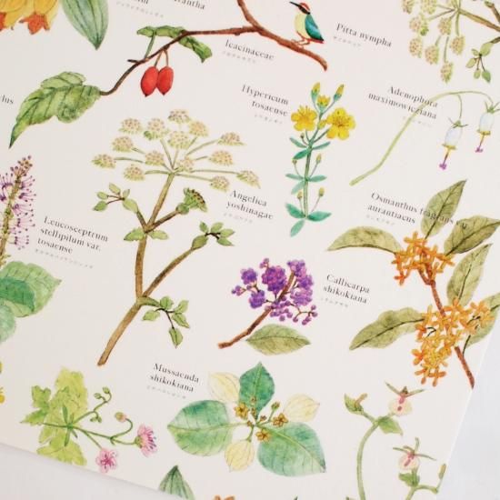 こちらの「博士の草花」は、高知県にゆかりのある牧野富太郎さんの命名した植物を集めたイラスト柄です。