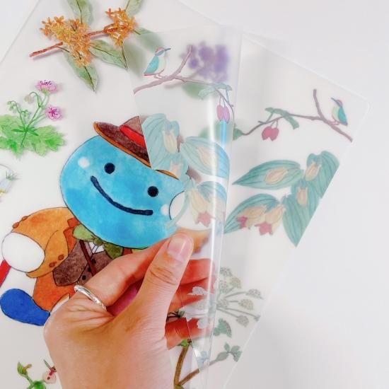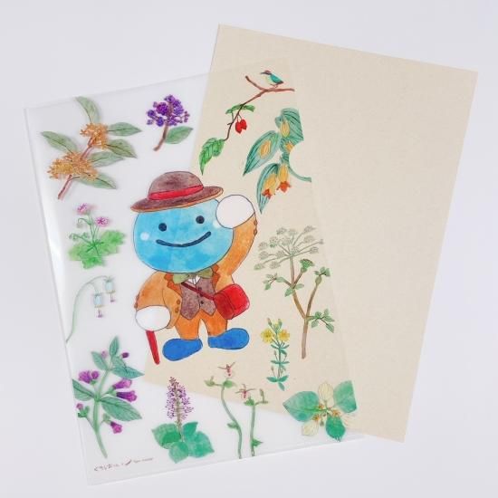 牧野博士に扮したくろしおくんと草花たちが繊細なタッチで描かれています。