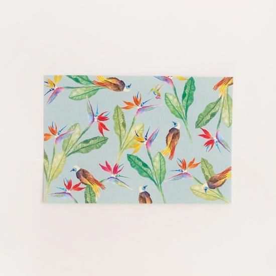 こちらの「極楽鳥花」は、印象的な花と鳥で虹色のような絵柄をイメージし、