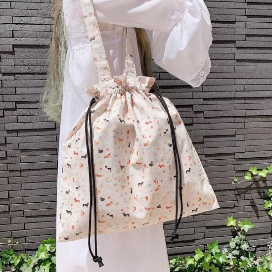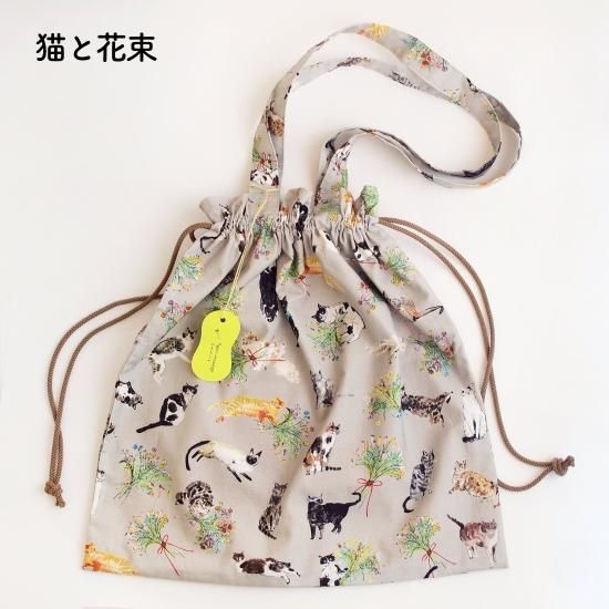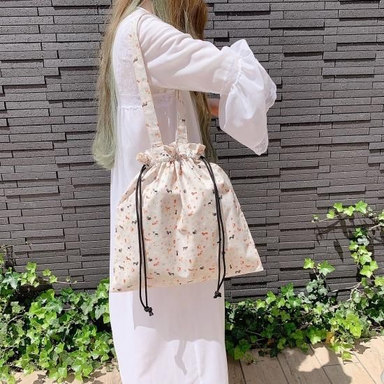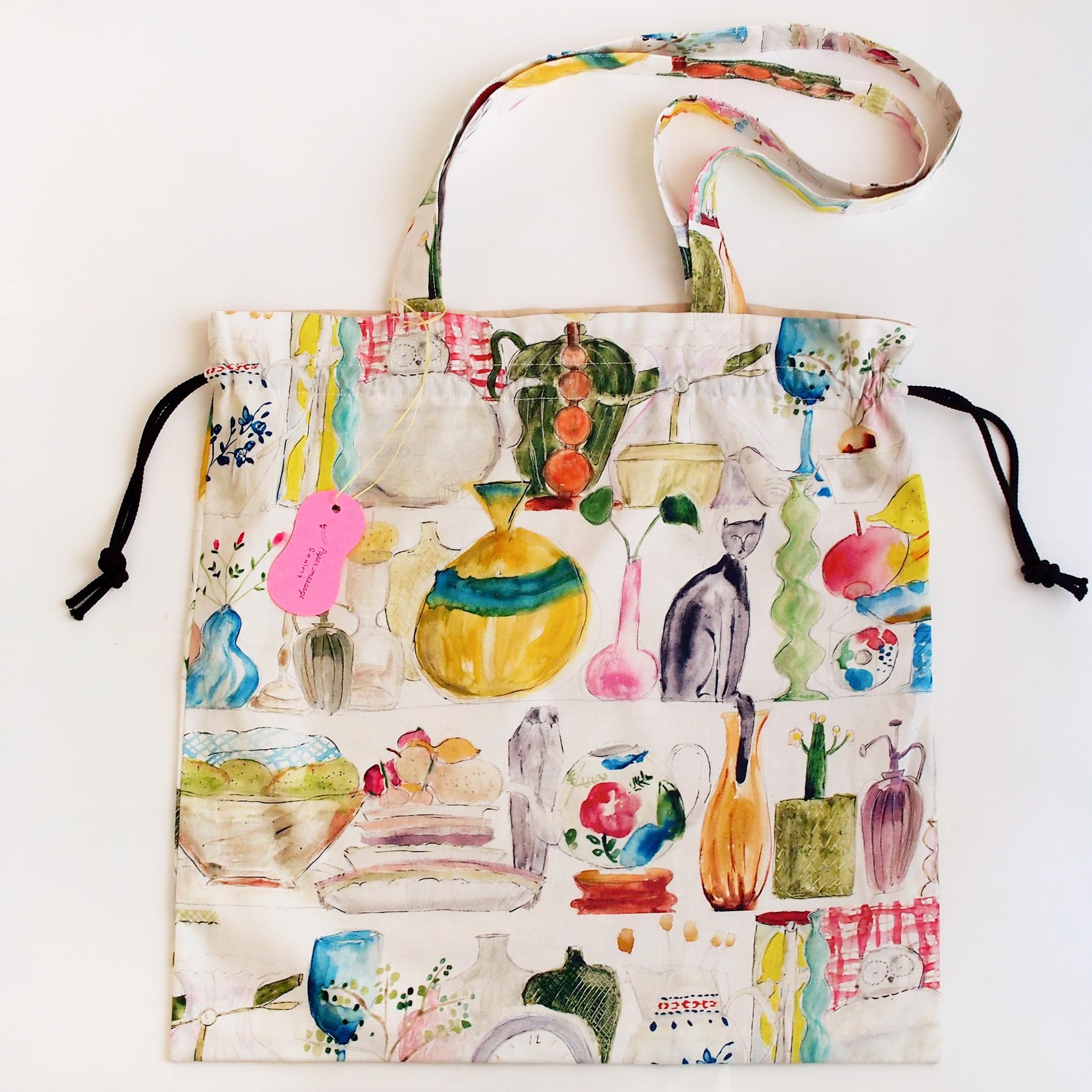 オリジナルイラスト柄の生地で作った巾着トートバッグです。