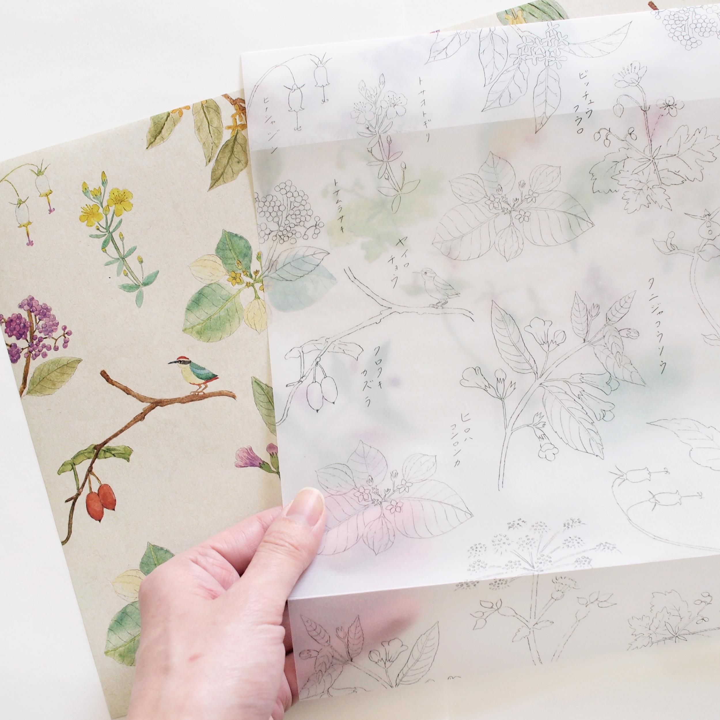 線画のイラストや植物名が印刷されたカバーを重ねて使う仕様です。