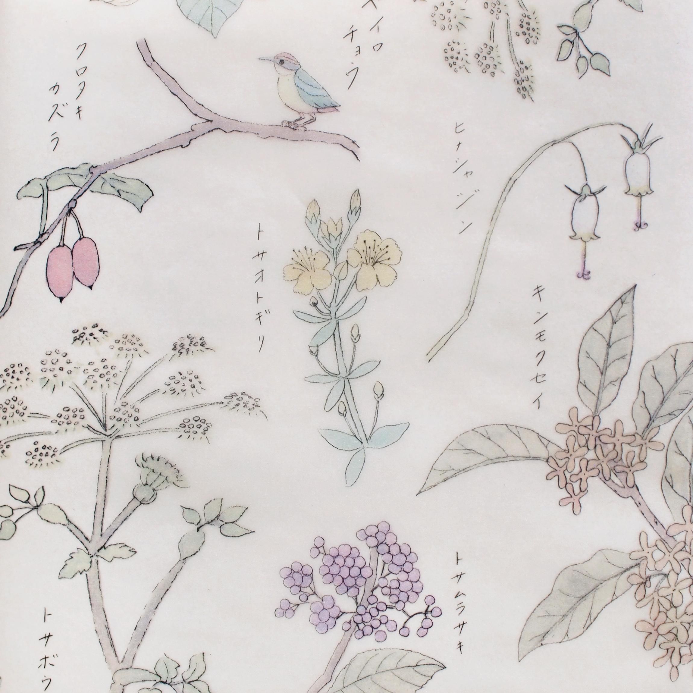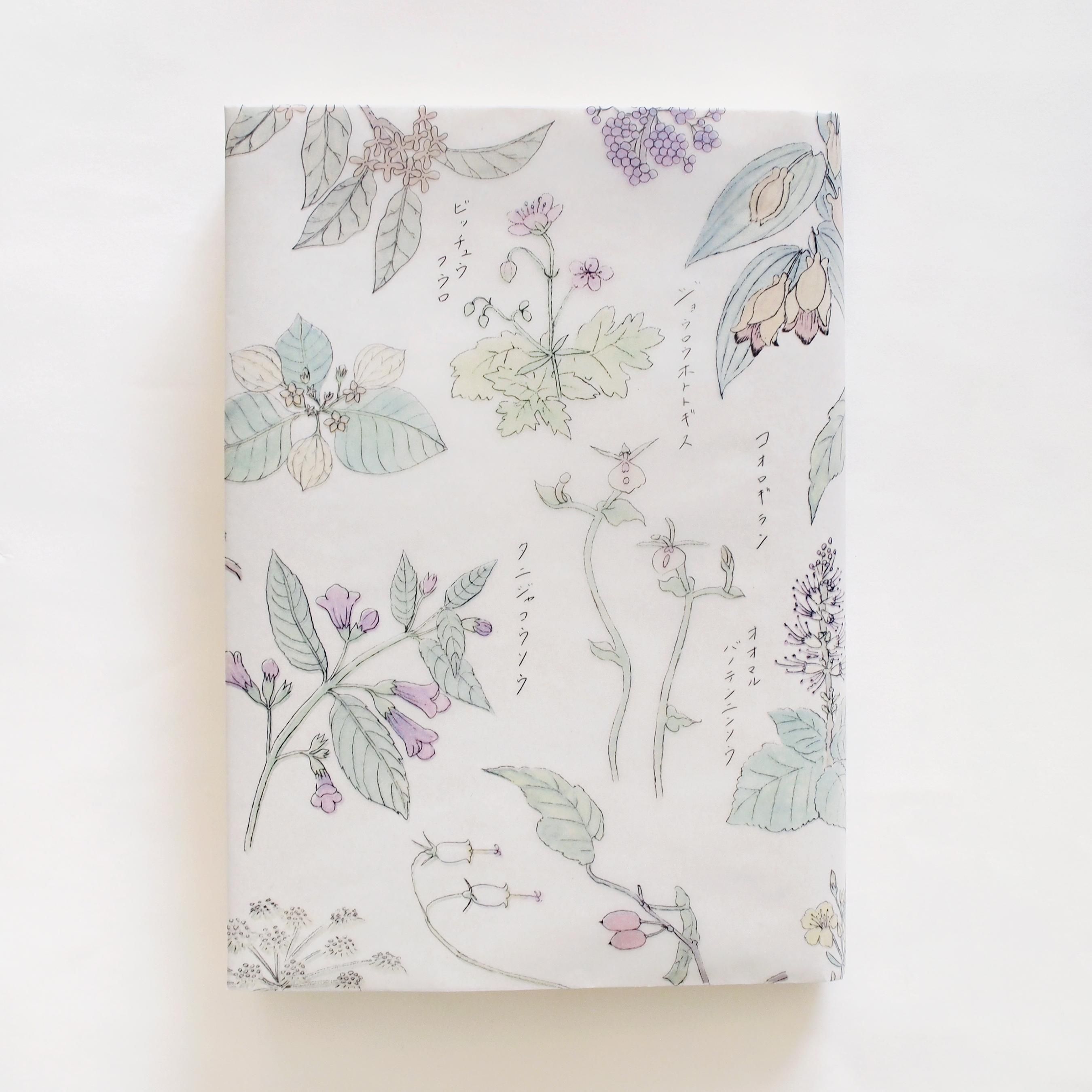 高知県にゆかりのある牧野富太郎さんの命名した植物を集めたイラスト柄「博士の草花」のブックカバーです。