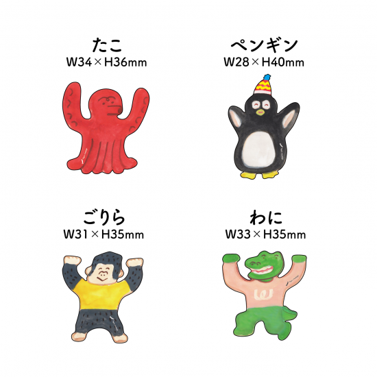 動物は8種類、食べ物は4種類登場したので、様々な組み合わせが楽しめます。