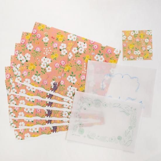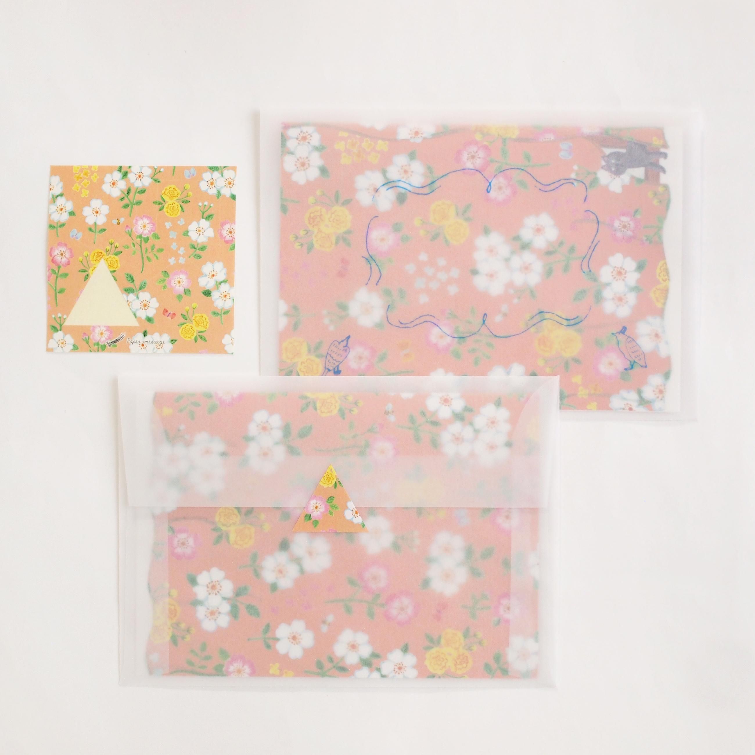 封筒はトレーシング封筒に花や鳥が印刷されています。