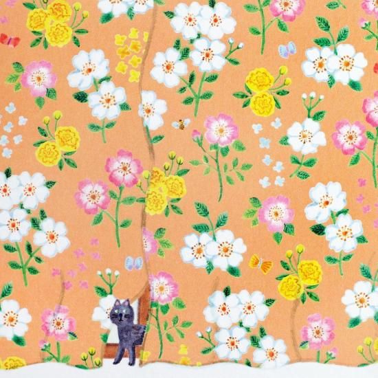 こちらの「野ばら」は、野に咲くバラとその蜜に集まるハチや蝶を描いたイラスト柄です。