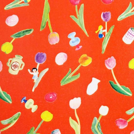 こちらの「チューリップと花瓶」は、カラフルなチューリップと花瓶を散りばめたイラスト柄です。