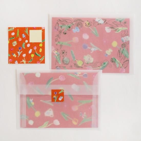 封筒はトレーシング封筒に花や鳥が印刷されています。