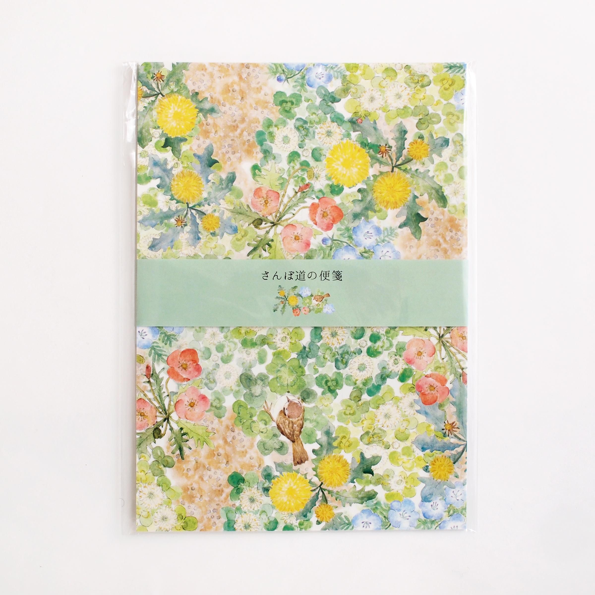 こちらの「さんぽ道」は、散歩中にふと見下ろした風景を水彩の優しいタッチで描いたイラスト柄です。