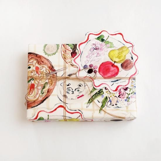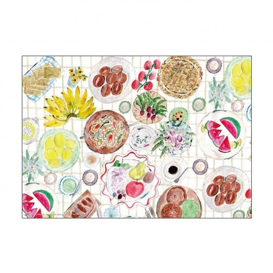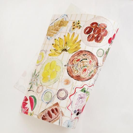 こちらの「テーブルの上」は、パーティーが始まる前のワクワクした気持ちを詰め込んだテーブルの上の様子を描いたイラスト柄です。