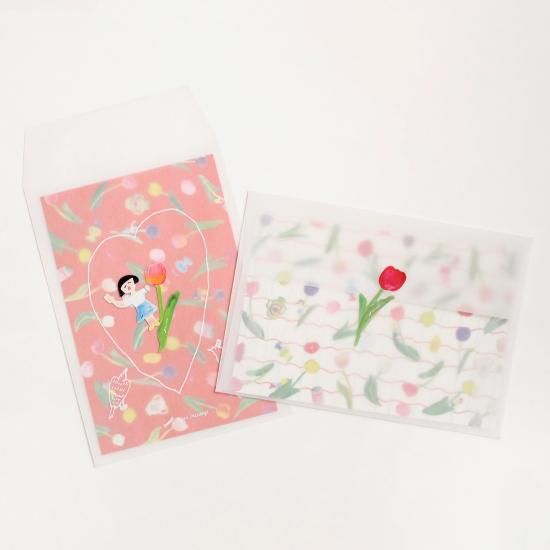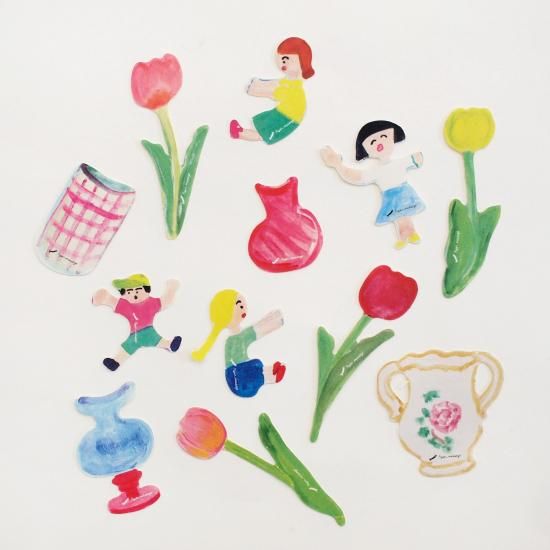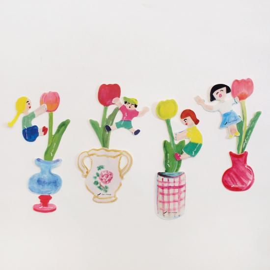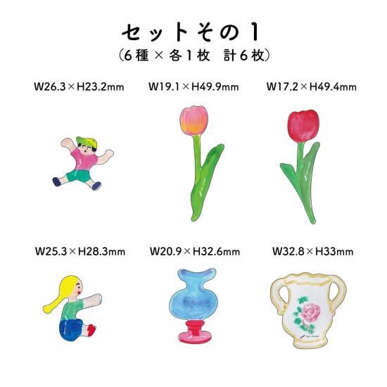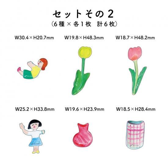 チューリップ、花瓶、小人が各2種ずつ入った、計6枚セットです。