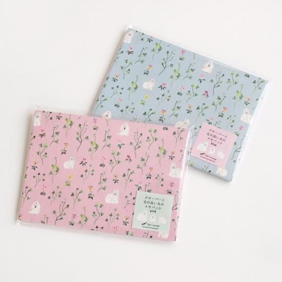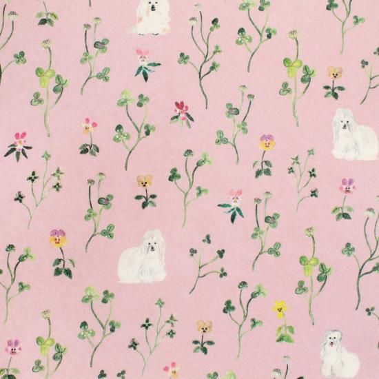 こちらの「クローバーと毛の長い犬」は、以前から沢山ご要望をいただいていただいていたクローバーモチーフのイラスト柄です。
