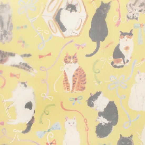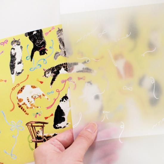 「リボンと猫」のイラスト柄が印刷された中紙と、