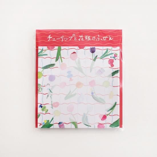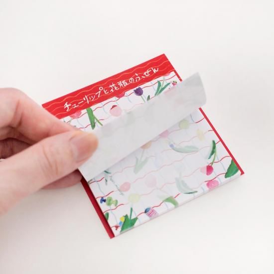 スクエアふせん「チューリップと花瓶 チェック」