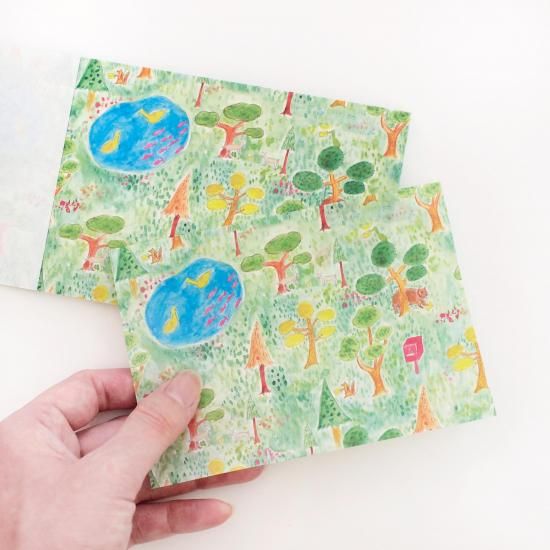 デザイナーが新たに描きおろしたイラスト柄「森の手紙」のメモパッドです。