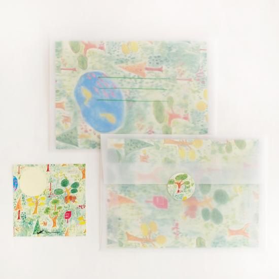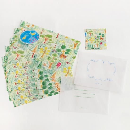 デザイナーが新たに描きおろしたイラスト柄「森の手紙」のレターセットです。