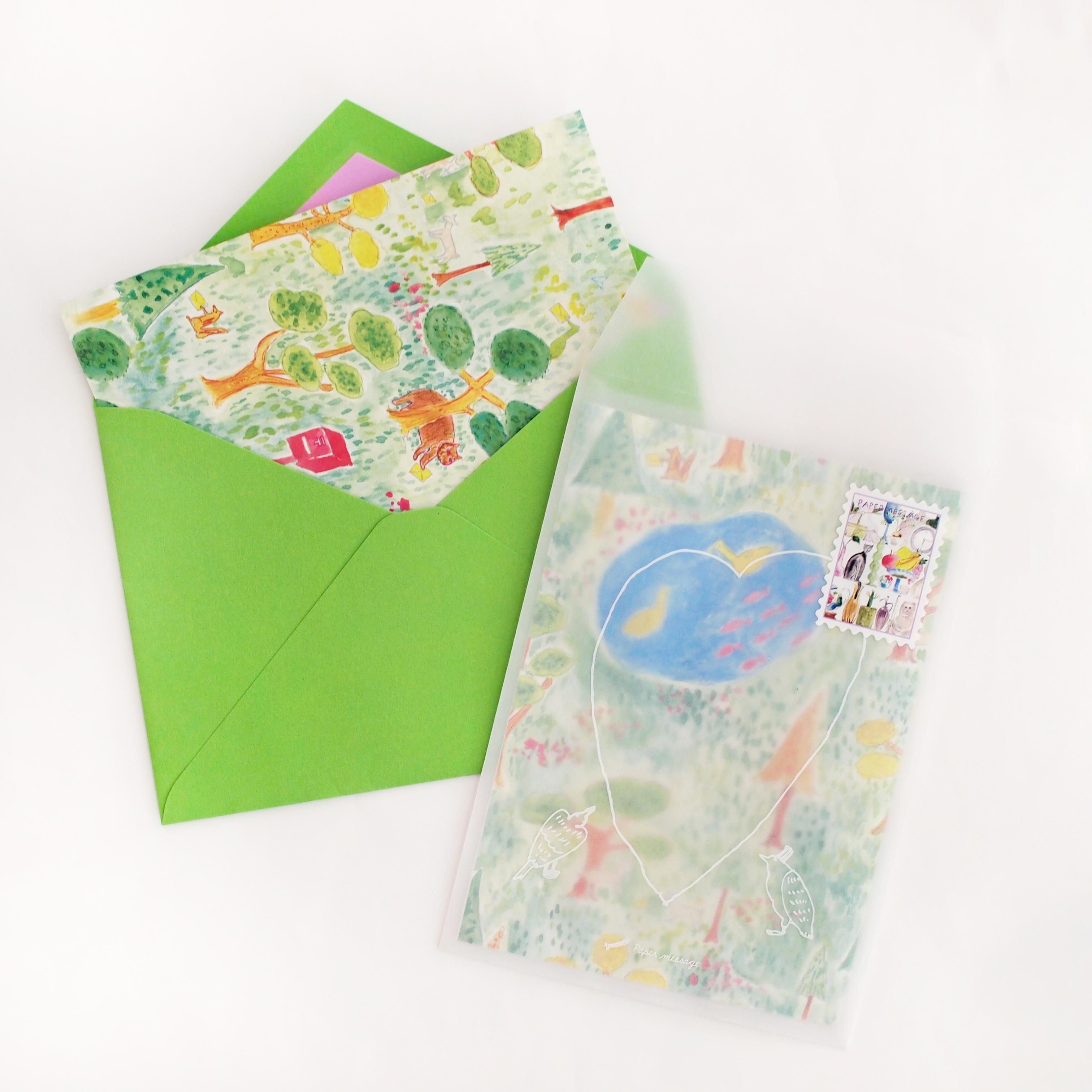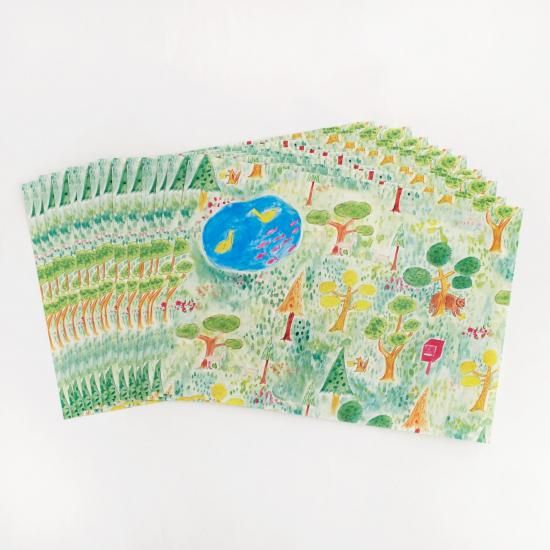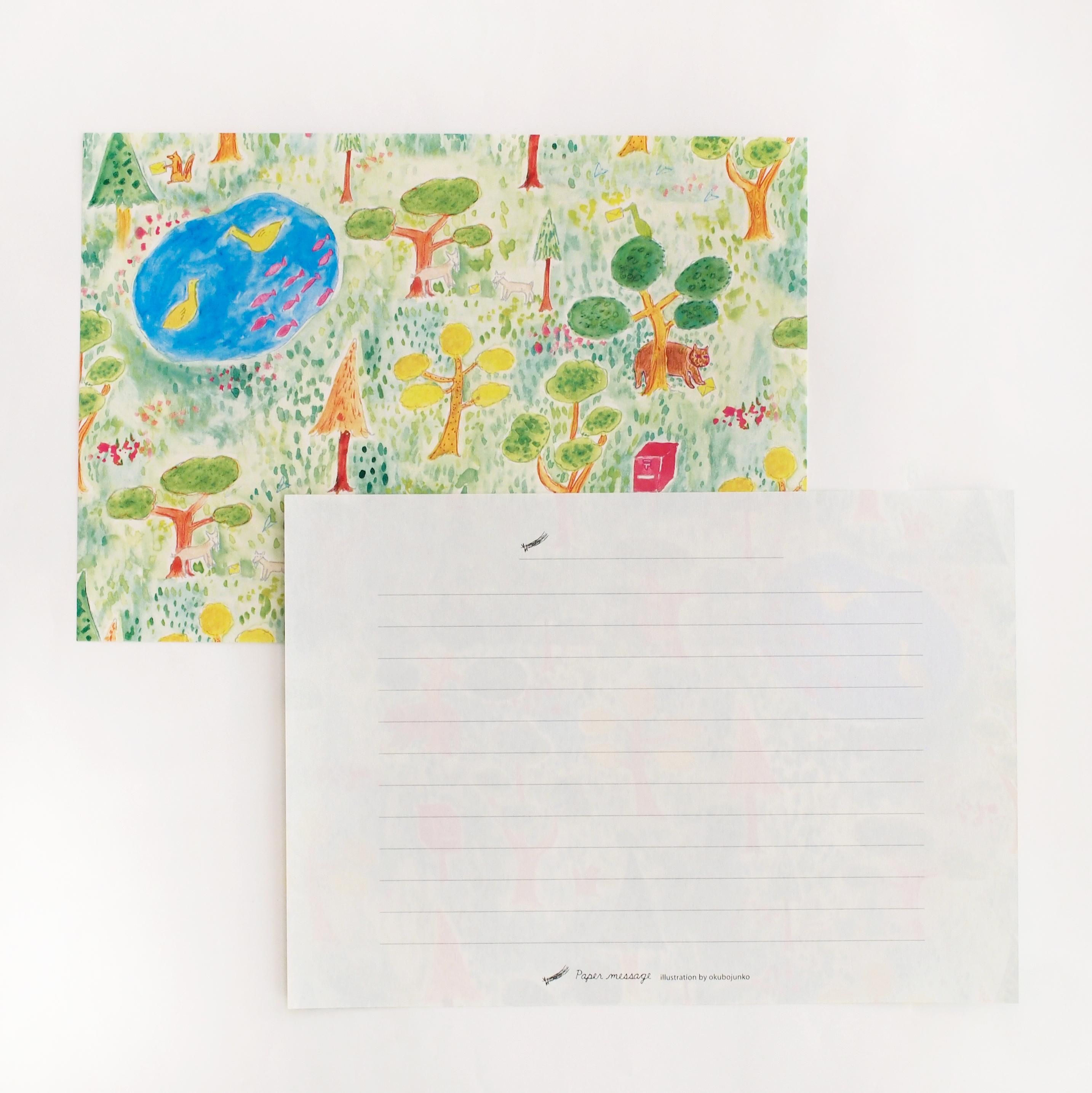 デザイナーが新たに描きおろしたイラスト柄「森の手紙」の便せんです。