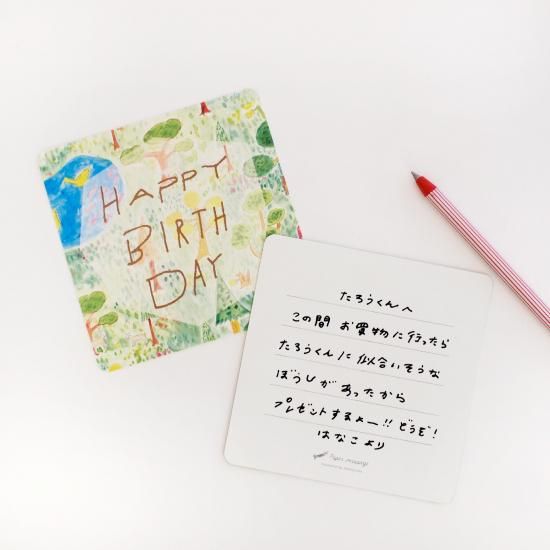 デザイナーが新たに描きおろしたイラスト柄「森の手紙」のお祝いカードです。