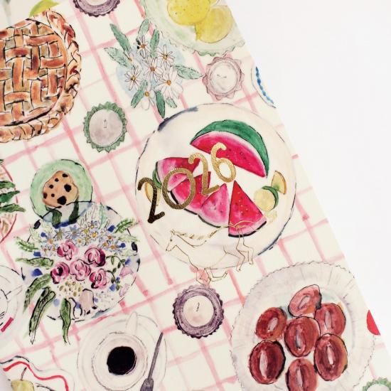 パーティーが始まる前のワクワクした気持ちを詰め込んだテーブルの上の様子を描いたイラスト柄「テーブルの上」のスケジュール帳です。