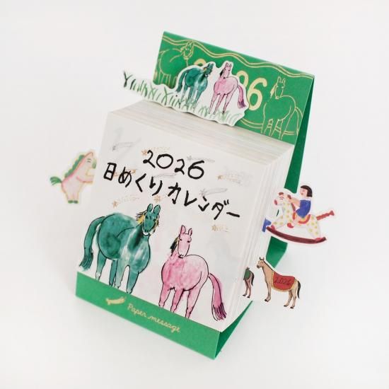 日めくりカレンダーと組み合わせるブックマークカードに、2026年の干支“馬”verが登場☆彡