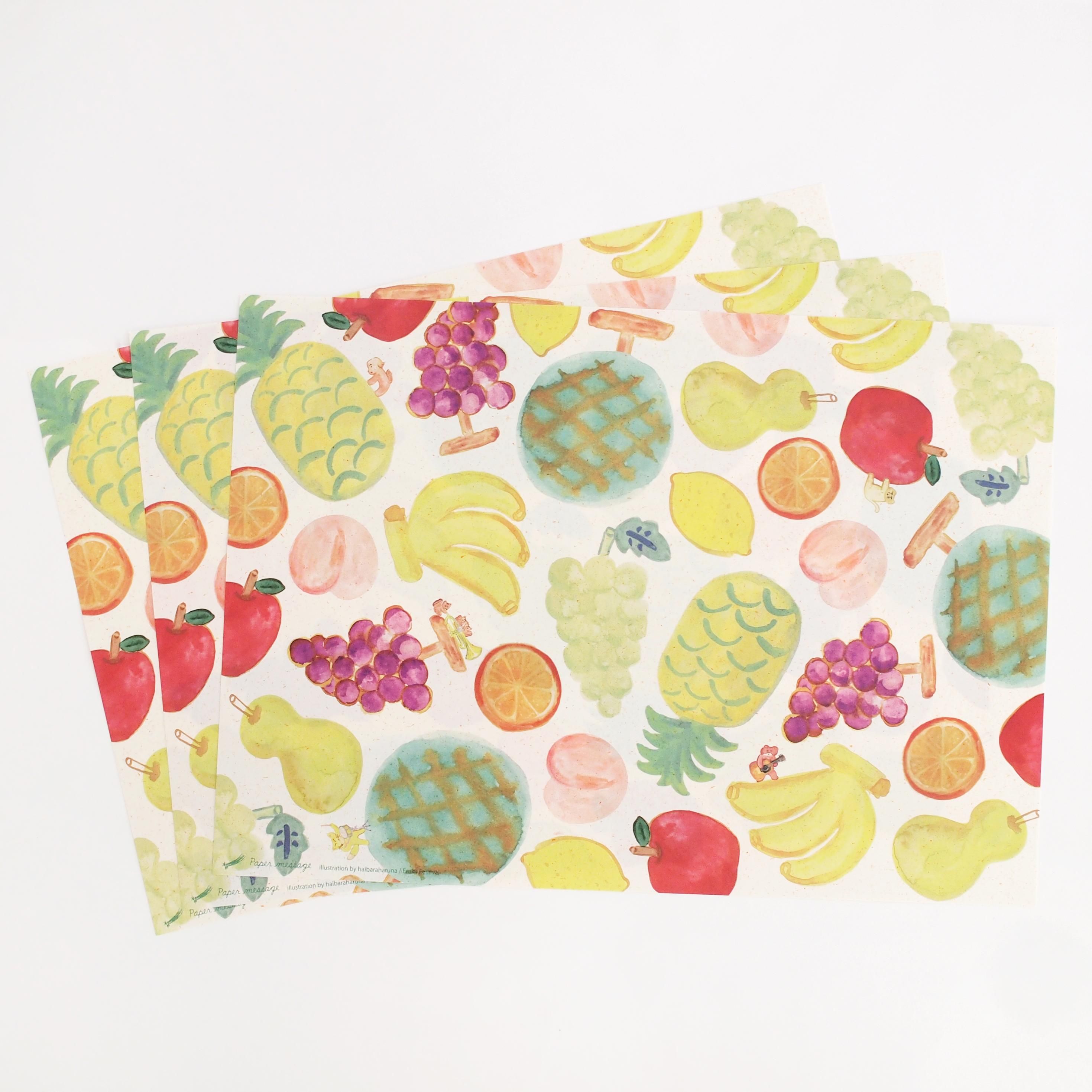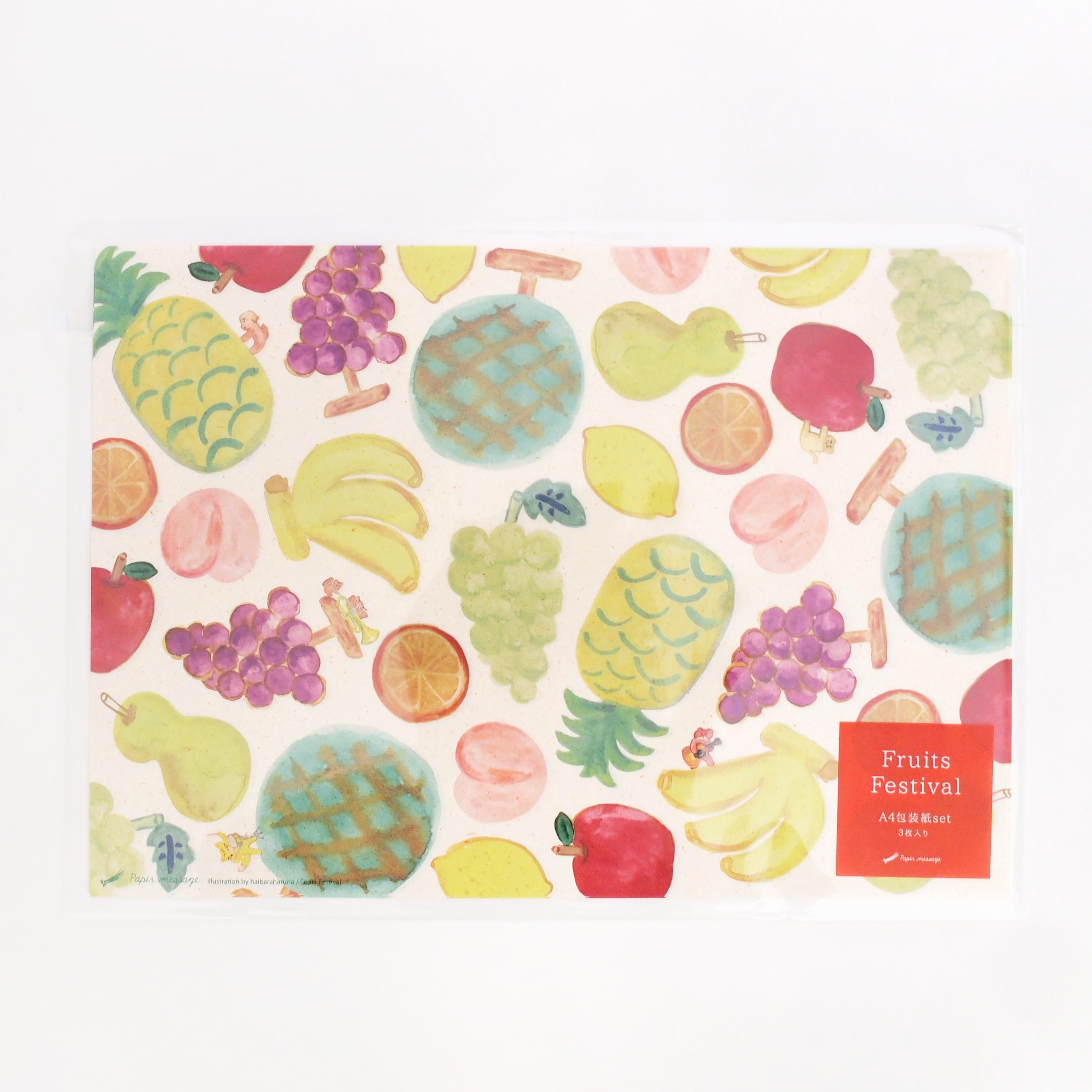美味しそうなフルーツのイラストが描かれた「Fruits Festival」の包装紙setです。