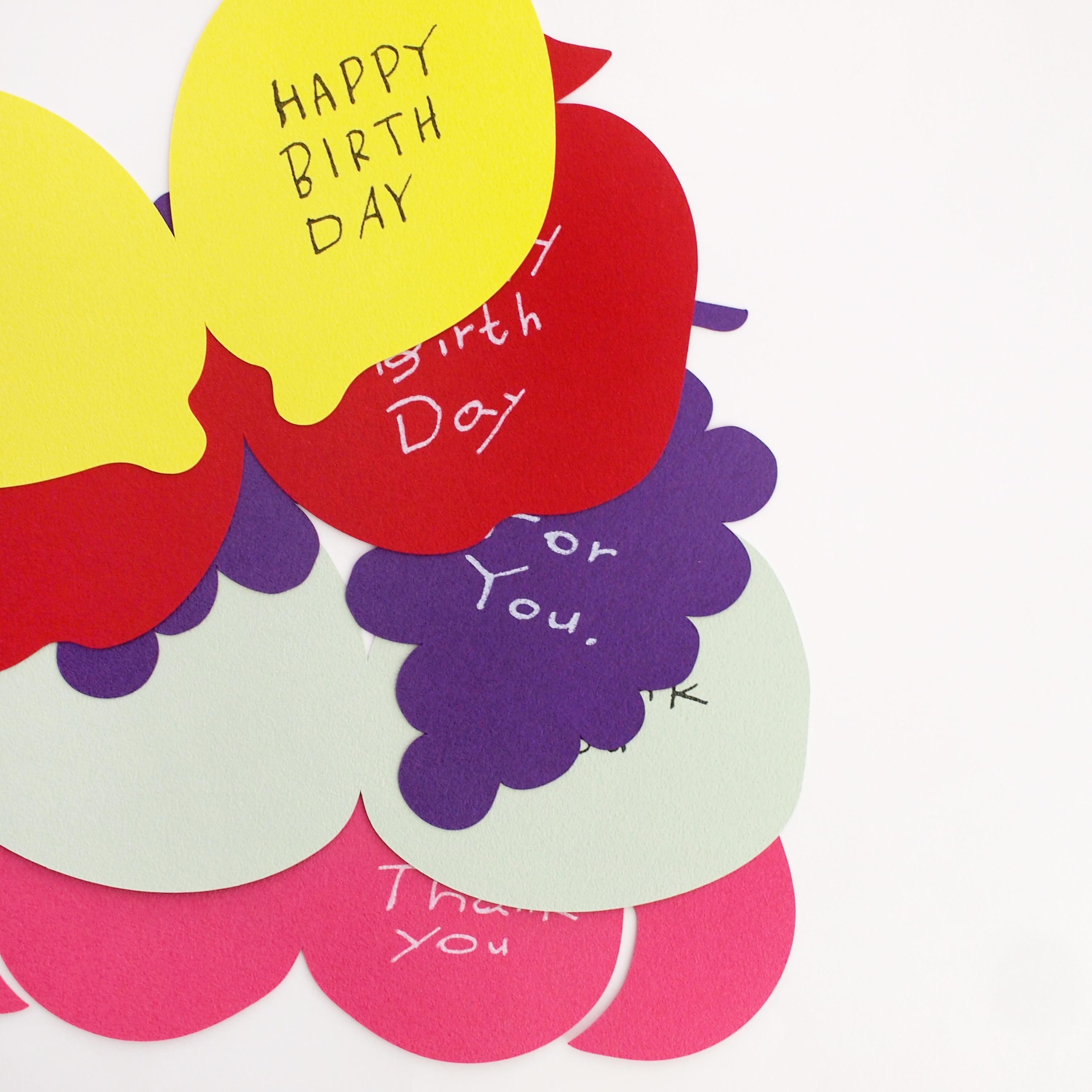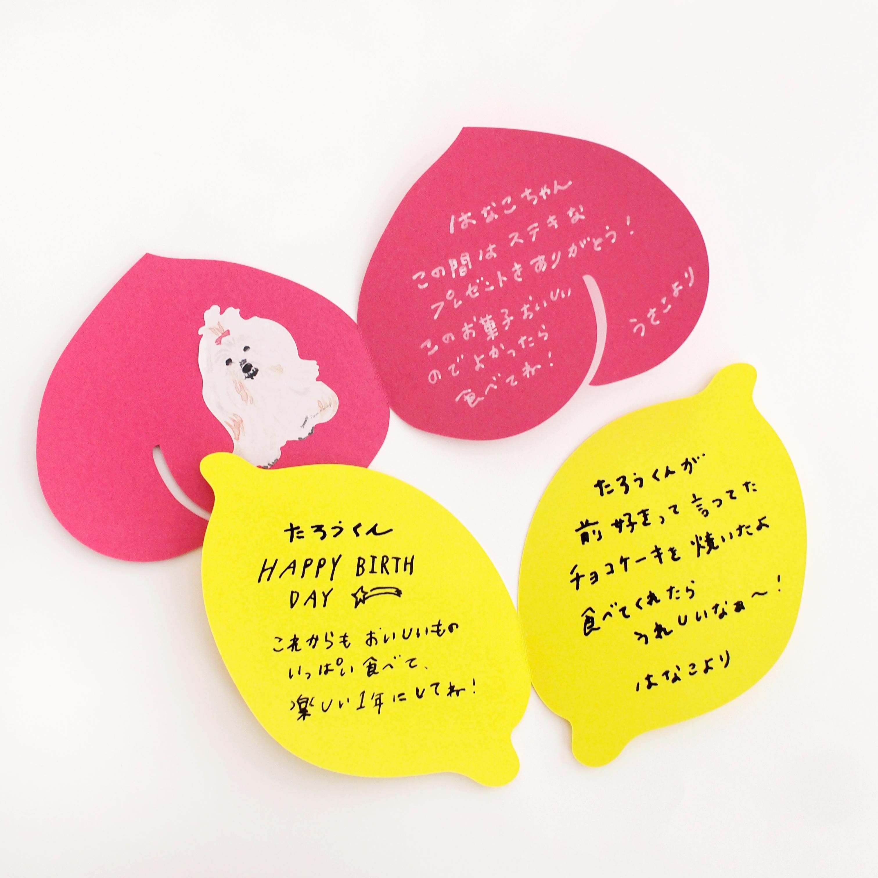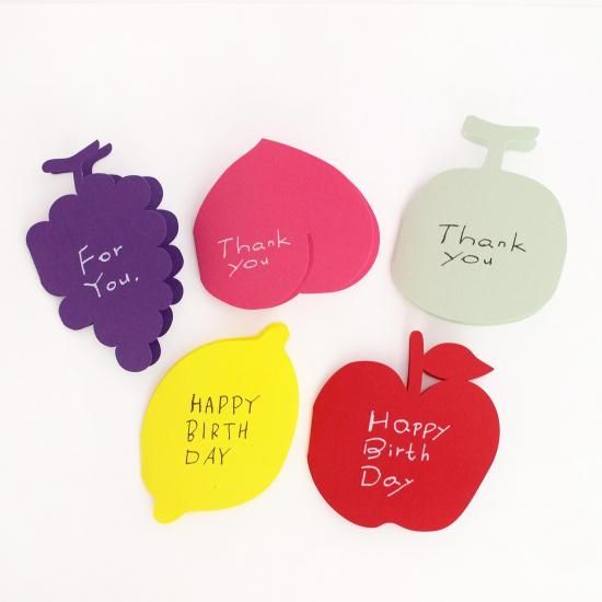 フルーツに合わせて紙の色も選んでいます。