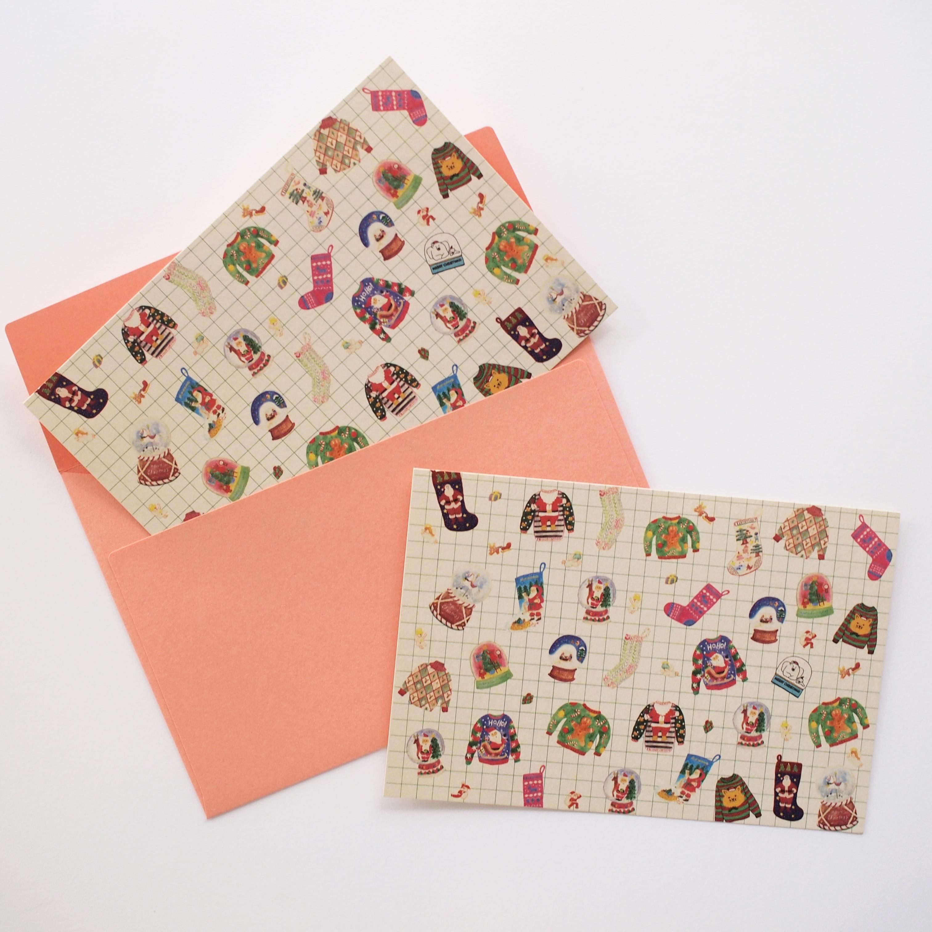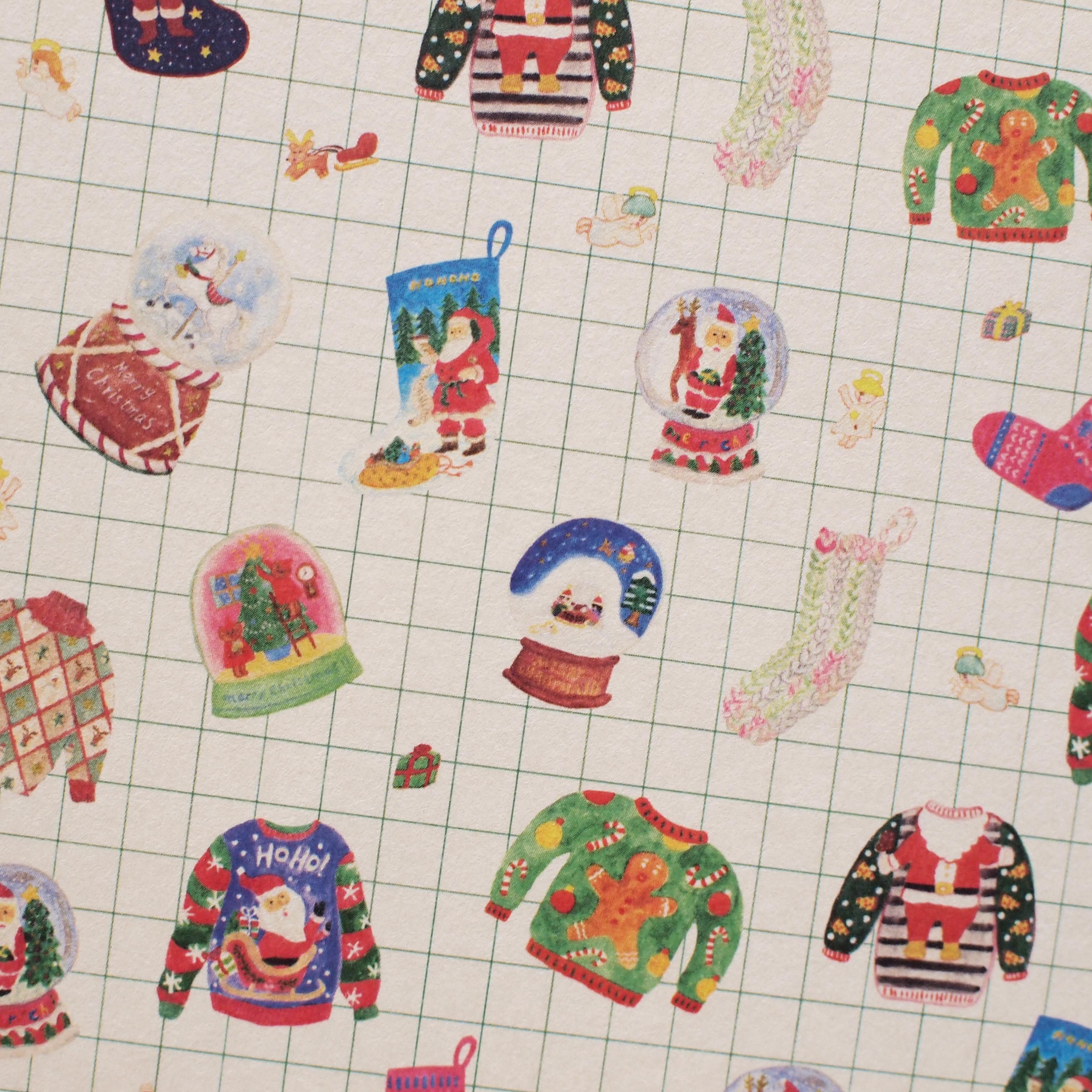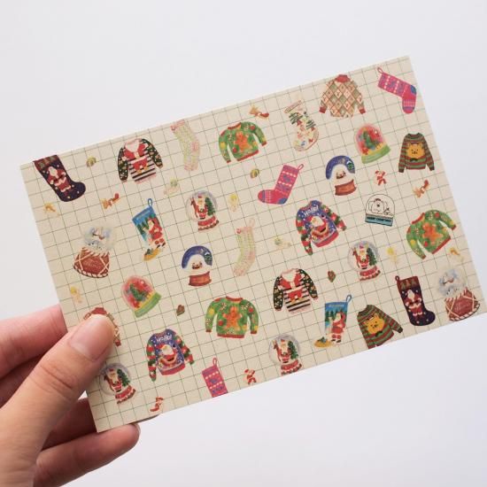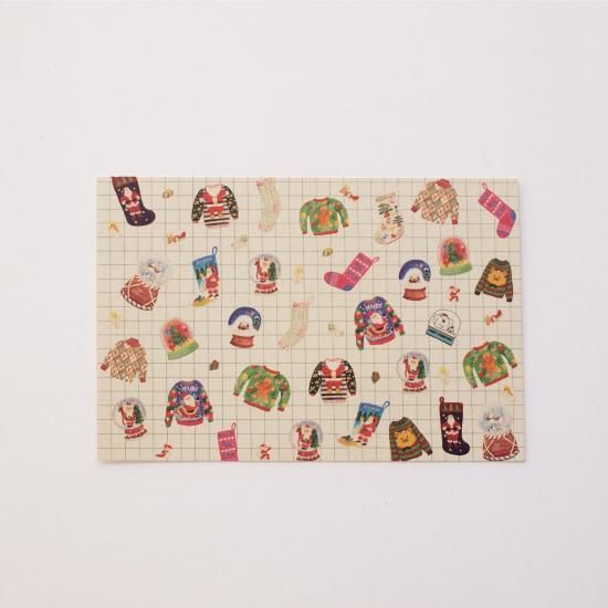 スノードームや靴下、セーターとクリスマスにまつわるイラストが描かれた「みんなのクリスマス」の