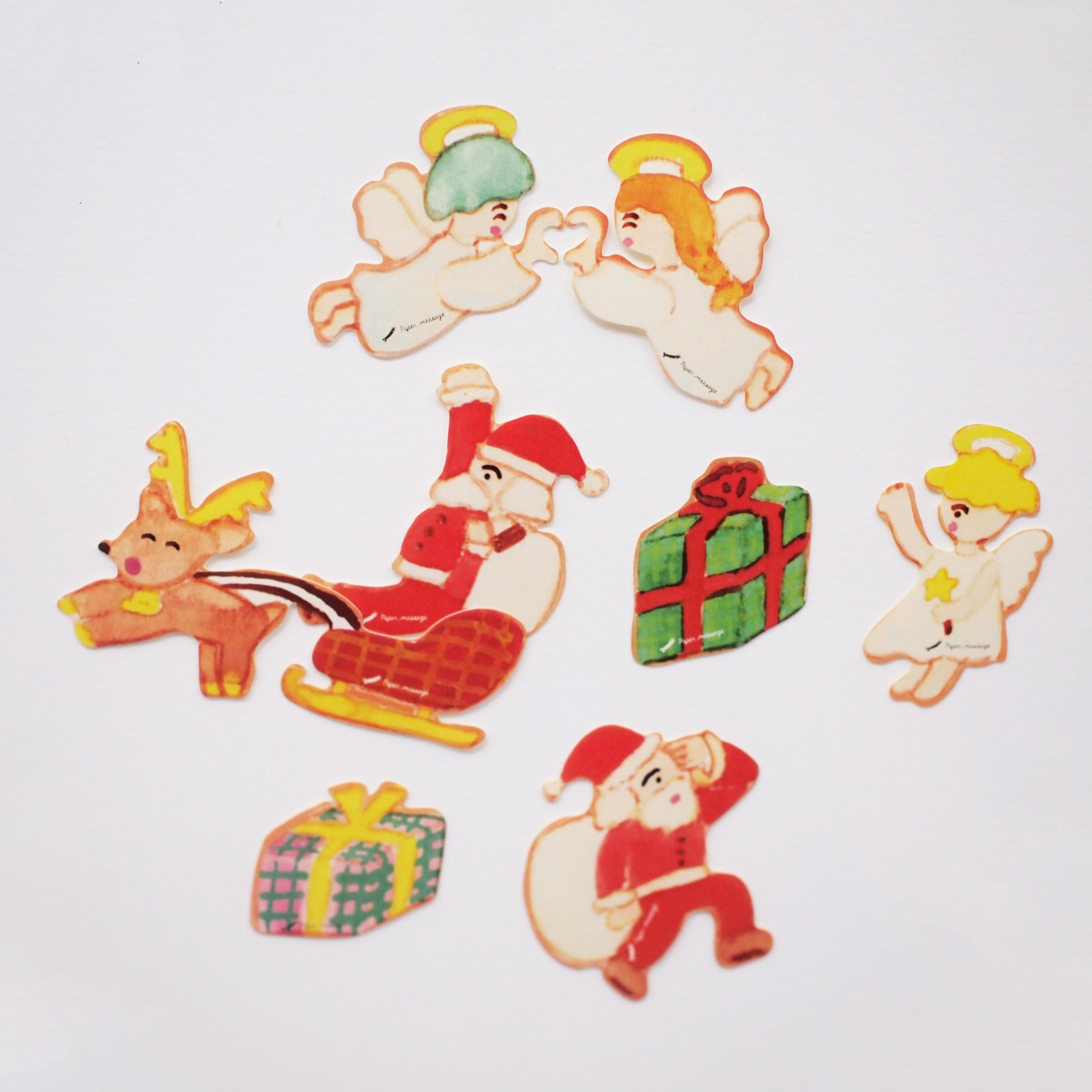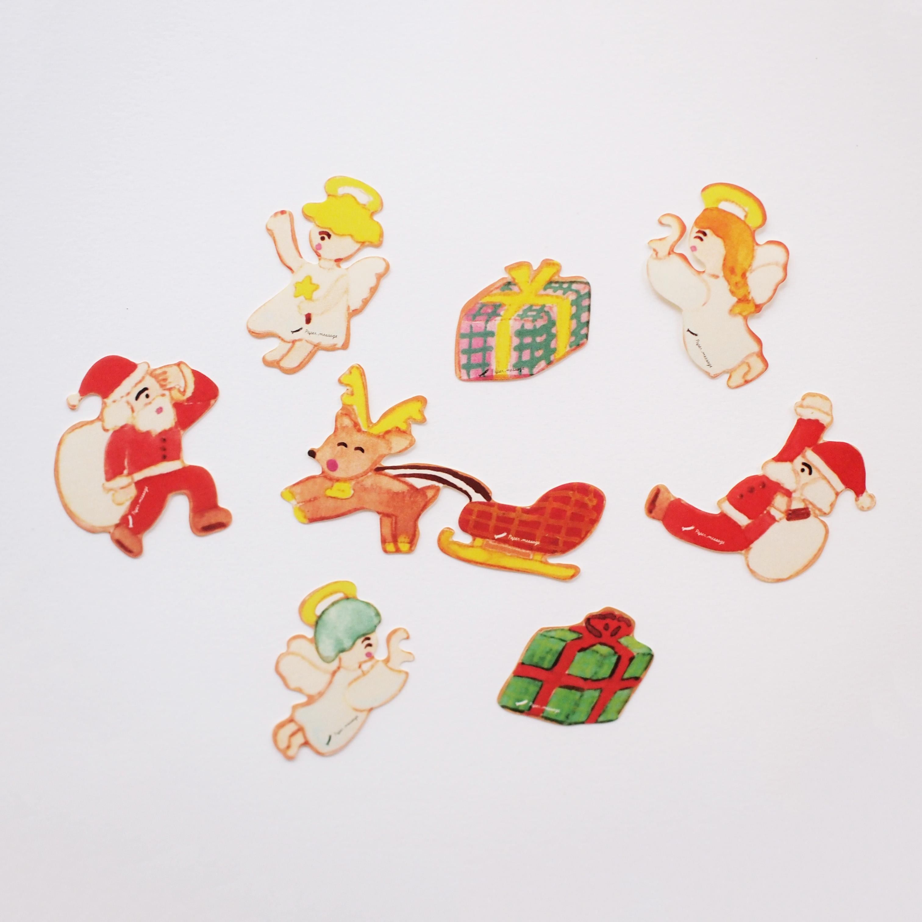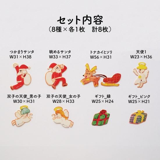 サンタ、トナカイ、天使、ギフトが入った、計8枚セットです。