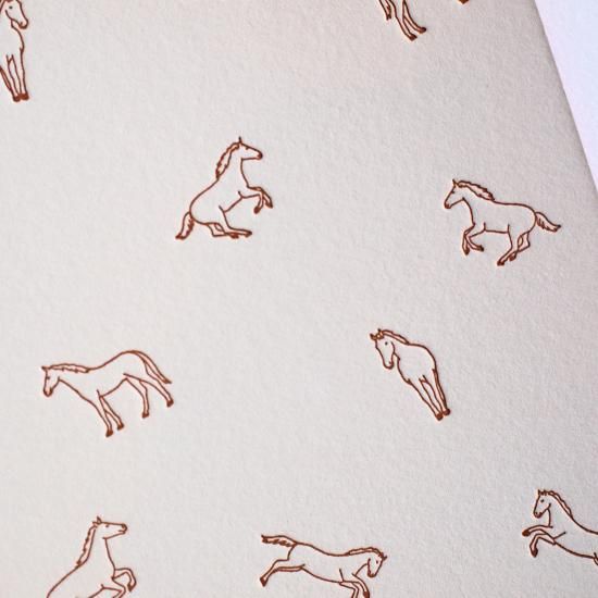 散りばめられた馬のイラストはブラウンの活版印刷。