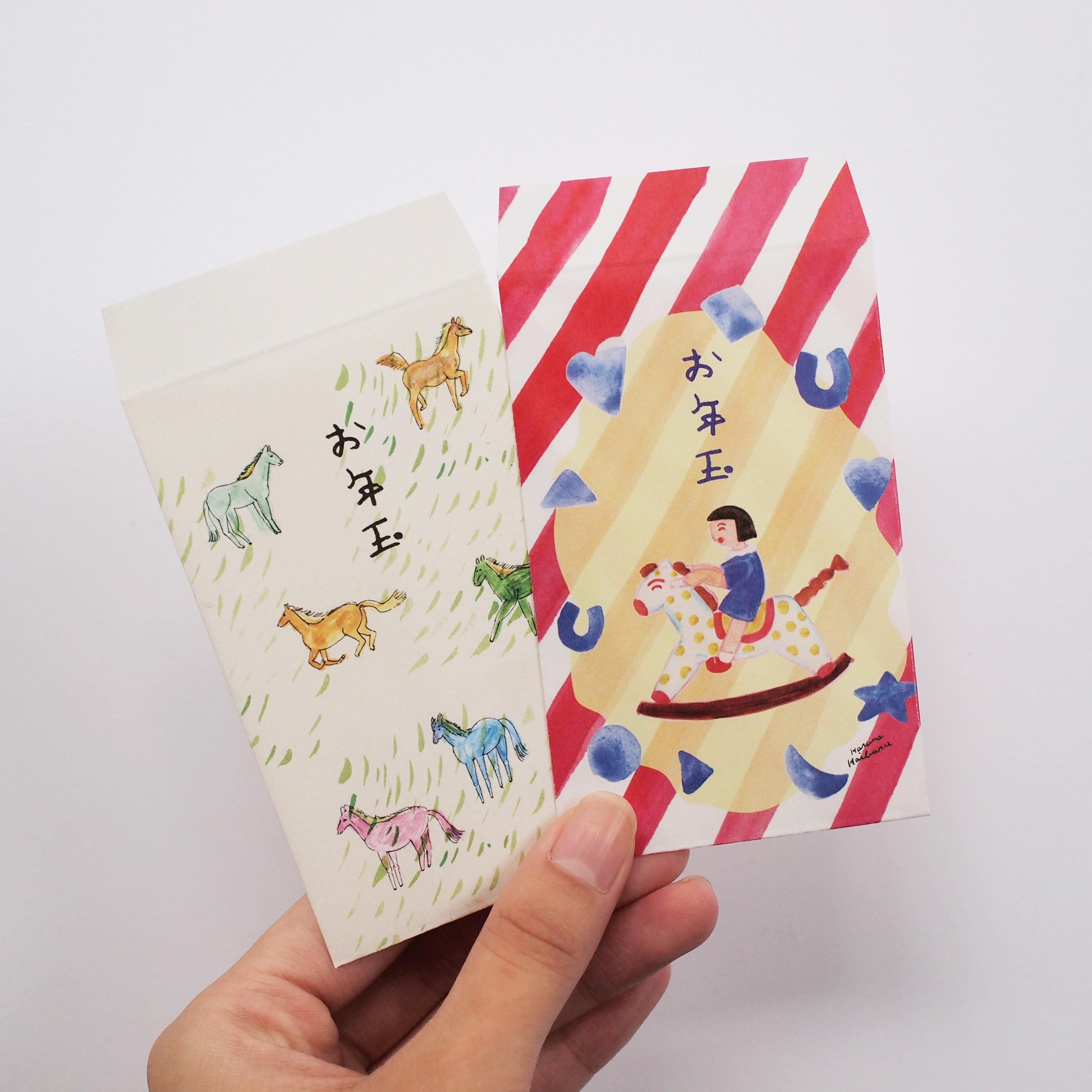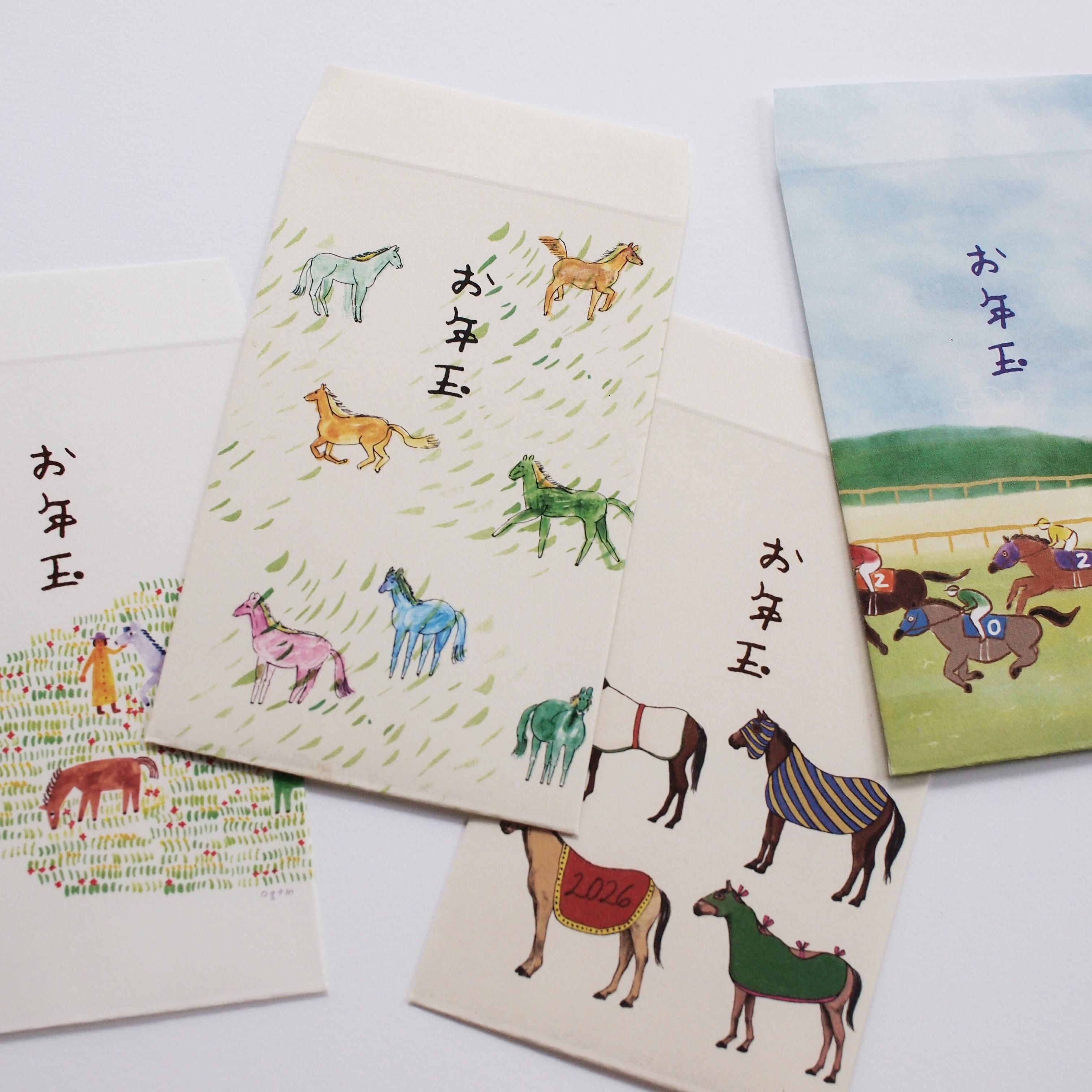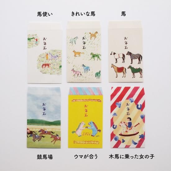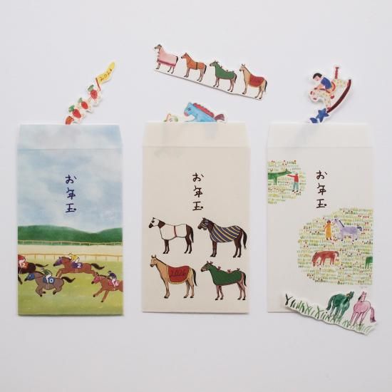 5人のデザイナーが描きおろした、いろんな馬のお年玉袋です。